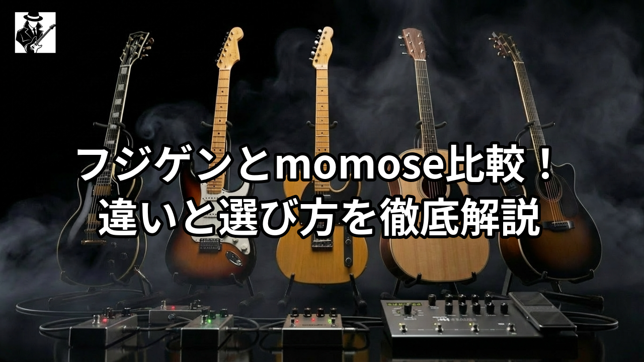 歪みサウンドでは、フジゲンは輪郭がはっきりしてミックスで抜けやすく、momoseは歪ませても音が濁りにくく分離感が良いという評価が多いです。