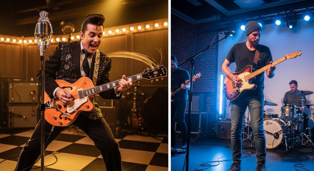 グレッチが特に輝くのは、ロカビリー、ロックンロール、カントリー、ブルースといったジャンルです。