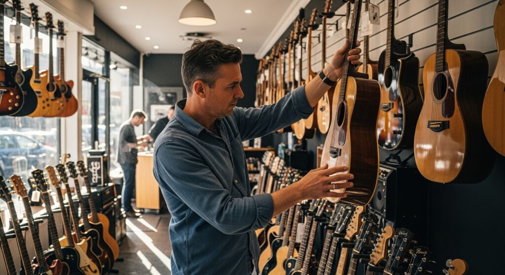 気になるギターが見つかったら、必ず楽器店に足を運んで試奏させてもらいましょう。