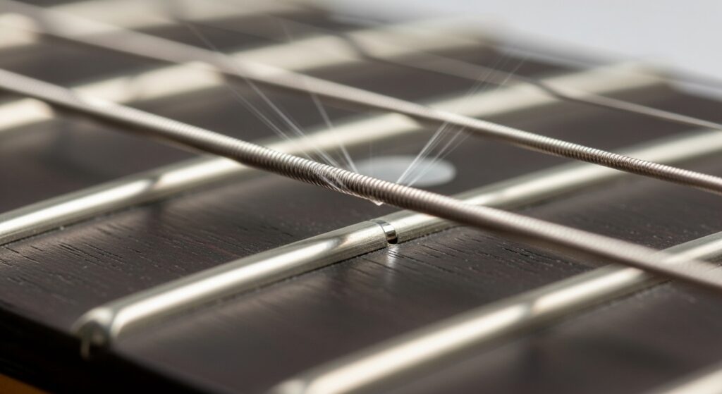 - 弦高が低すぎる: 弦とフレットの距離が近すぎると、弦が振動するスペースがなくなりビビリやすくなります。
