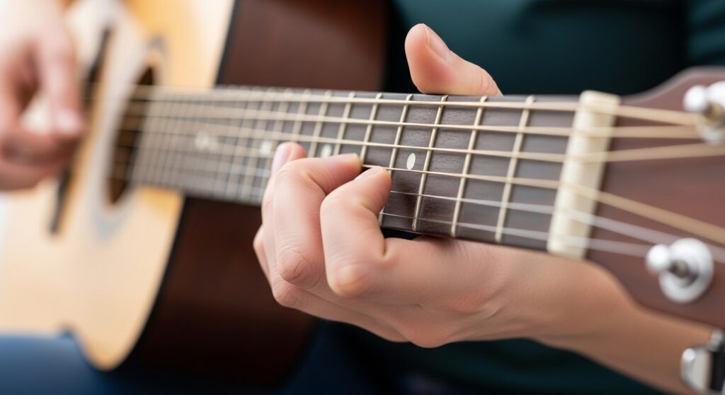 - 指を立てて押さえる: 指を立てることで、狙った弦をしっかり押さえられるだけでなく、隣の弦に指が触れて音がミュートされてしまうのを防げます。