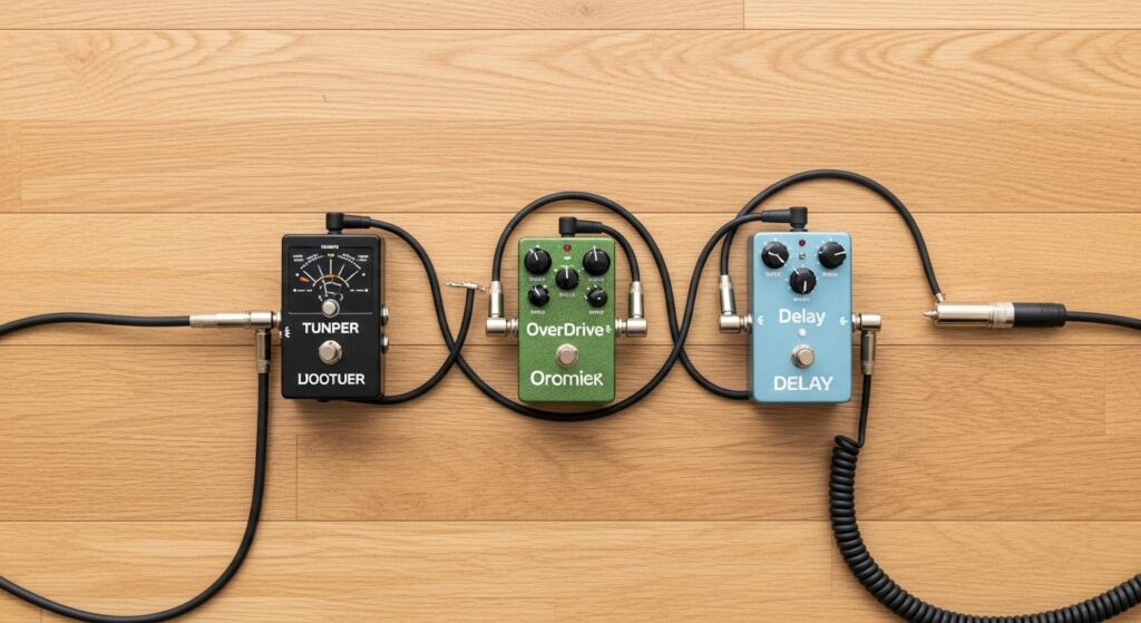 まず最初に「チューナー」を確保し、次に自分の音楽性に最も必要な「歪み系(オーバードライブなど)」、そして表現の幅を広げる「空間系(リバーブやディレイ)」という順番がおすすめです。