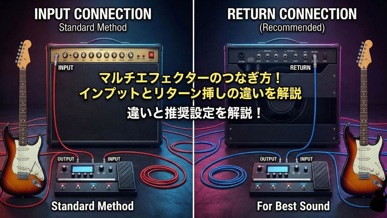 マルチエフェクターをギターアンプに接続する方法は、大きく分けて「インプット挿し」と「リターン挿し」の2つがあります。