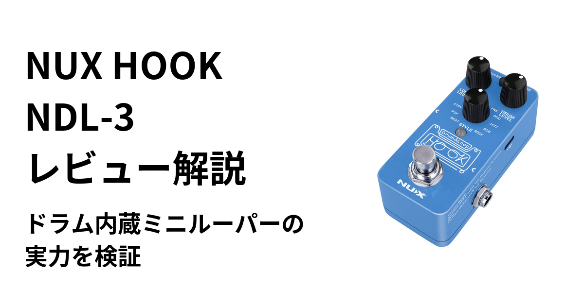 「自宅練習にリズムが欲しいけど、ドラムマシンとルーパーを別々に買うのは場所もお金もかかる…」「コンパクトなペダルボードにドラム付きルーパーを組み込みたい」——そんな悩みを抱えるギタリストに注目されているのが、NUXのミニルーパーペダル「HOOK NDL-3」です。