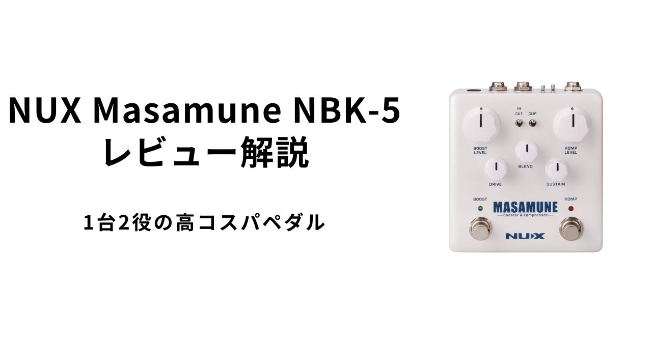 NUX Masamune NBK-5は、ブースターとコンプレッサーを1台に凝縮し、柔軟なルーティング機能まで備えたコストパフォーマンス抜群のペダルです。
